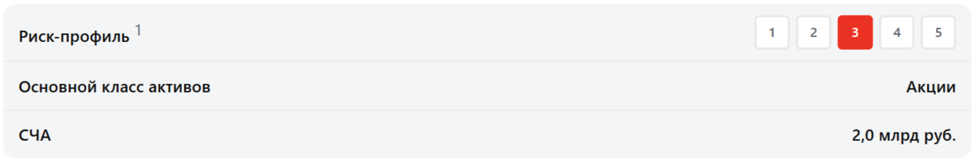 1 Указываемый индикативный риск-профиль продукта представлен исключительно в информационно-справочных целях, отражает индикативный уровень потенциального риска при инвестициях в продукты УК «Альфа-Капитал». Не является указанием уровня допустимого риска клиента, определяемого в соответствии с требованиями Положения Банка России 482-П «О единых требованиях к правилам осуществления деятельности по управлению ценными бумагами, к порядку раскрытия управляющим информации, а также требованиях, направленных на исключение конфликта интересов управляющего» и Базового стандарта совершения управляющим операций на финансовом рынке.