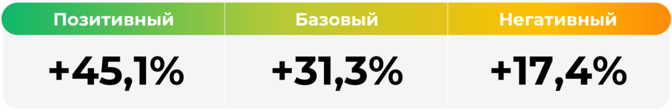 *Сценарные прогнозы (далее - Сценарии) рассчитаны на основании портфеля активов, составляющих имущество фонда в соответствии с Методикой расчета сценарных прогнозов открытых и биржевых паевых инвестиционных фондов под управлением ООО УК "Альфа Капитал", размещенной на сайте управляющей компании по адресу https://www.alfacapital.ru/disclosure/clients_info. Сценарии отражают аналитическую оценку потенциальной динамики совокупного портфеля активов за вычетом лимитированных в соответствии с правилами доверительного управления фондом размеров расходов и вознаграждений, подлежащих оплате за счет имущества фонда, и не являются гарантией или обещанием достижения соответствующих результатов в будущем. Инвестирование в финансовые инструменты сопряжено с рисками, в том числе с риском частичной потери инвестированных средств в связи с возможным неблагоприятным влиянием разного рода факторов. Фактические результаты инвестирования могут отличаться от представленных в расчетах Сценариев. Расчеты Сценариев ООО УК «Альфа-Капитал» осуществляются с использованием данных Сервиса прогнозов АО Петербургская Биржа.