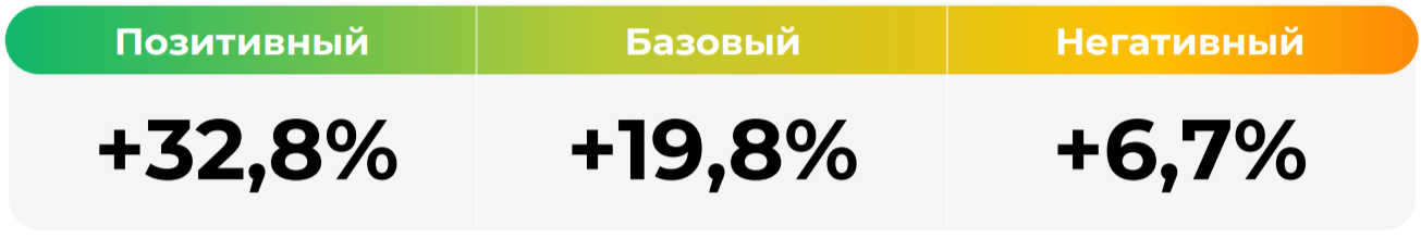 *Сценарные прогнозы (далее - Сценарии) рассчитаны на основании портфеля активов, составляющих имущество фонда в соответствии с Методикой расчета сценарных прогнозов открытых и биржевых паевых инвестиционных фондов под управлением ООО УК "Альфа Капитал", размещенной на сайте управляющей компании по адресу https://www.alfacapital.ru/disclosure/clients_info. Сценарии отражают аналитическую оценку потенциальной динамики совокупного портфеля активов за вычетом лимитированных в соответствии с правилами доверительного управления фондом размеров расходов и вознаграждений, подлежащих оплате за счет имущества фонда, и не являются гарантией или обещанием достижения соответствующих результатов в будущем. Инвестирование в финансовые инструменты сопряжено с рисками, в том числе с риском частичной потери инвестированных средств в связи с возможным неблагоприятным влиянием разного рода факторов. Фактические результаты инвестирования могут отличаться от представленных в расчетах Сценариев. Расчеты Сценариев ООО УК «Альфа-Капитал» осуществляются с использованием данных Сервиса прогнозов АО Петербургская Биржа.