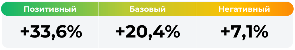 *Сценарные прогнозы (далее - Сценарии) рассчитаны на основании портфеля активов, составляющих имущество фонда в соответствии с Методикой расчета сценарных прогнозов открытых и биржевых паевых инвестиционных фондов под управлением ООО УК "Альфа Капитал", размещенной на сайте управляющей компании по адресу https://www.alfacapital.ru/disclosure/clients_info. Сценарии отражают аналитическую оценку потенциальной динамики совокупного портфеля активов за вычетом лимитированных в соответствии с правилами доверительного управления фондом размеров расходов и вознаграждений, подлежащих оплате за счет имущества фонда, и не являются гарантией или обещанием достижения соответствующих результатов в будущем. Инвестирование в финансовые инструменты сопряжено с рисками, в том числе с риском частичной потери инвестированных средств в связи с возможным неблагоприятным влиянием разного рода факторов. Фактические результаты инвестирования могут отличаться от представленных в расчетах Сценариев. Расчеты Сценариев ООО УК «Альфа-Капитал» осуществляются с использованием данных Сервиса прогнозов АО Петербургская Биржа.