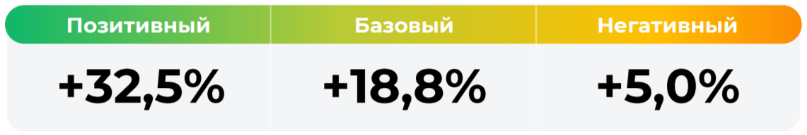 *Сценарные прогнозы (далее - Сценарии) рассчитаны на основании портфеля активов, составляющих имущество фонда в соответствии с Методикой расчета сценарных прогнозов открытых и биржевых паевых инвестиционных фондов под управлением ООО УК "Альфа Капитал", размещенной на сайте управляющей компании по адресу https://www.alfacapital.ru/disclosure/clients_info. Сценарии отражают аналитическую оценку потенциальной динамики совокупного портфеля активов за вычетом лимитированных в соответствии с правилами доверительного управления фондом размеров расходов и вознаграждений, подлежащих оплате за счет имущества фонда, и не являются гарантией или обещанием достижения соответствующих результатов в будущем. Инвестирование в финансовые инструменты сопряжено с рисками, в том числе с риском частичной потери инвестированных средств в связи с возможным неблагоприятным влиянием разного рода факторов. Фактические результаты инвестирования могут отличаться от представленных в расчетах Сценариев. Расчеты Сценариев ООО УК «Альфа-Капитал» осуществляются с использованием данных Сервиса прогнозов АО Петербургская Биржа.