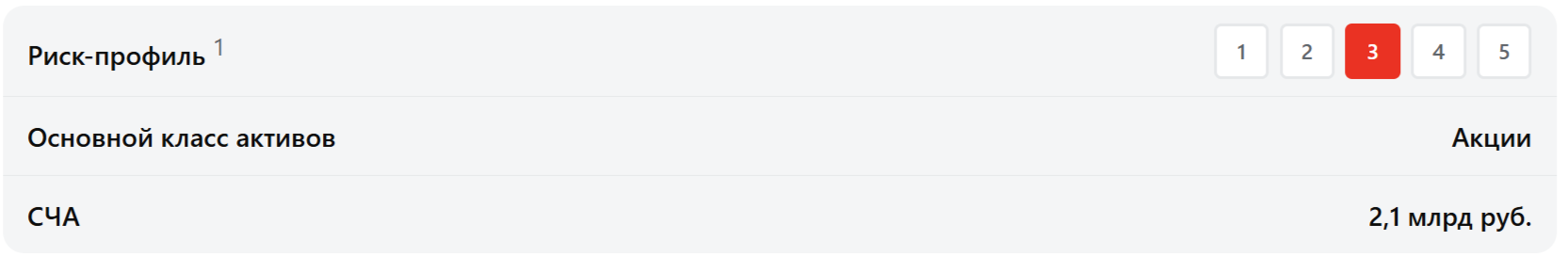 1 Указываемый индикативный риск-профиль продукта представлен исключительно в информационно-справочных целях, отражает индикативный уровень потенциального риска при инвестициях в продукты УК «Альфа-Капитал». Не является указанием уровня допустимого риска клиента, определяемого в соответствии с требованиями Положения Банка России 482-П «О единых требованиях к правилам осуществления деятельности по управлению ценными бумагами, к порядку раскрытия управляющим информации, а также требованиях, направленных на исключение конфликта интересов управляющего» и Базового стандарта совершения управляющим операций на финансовом рынке.