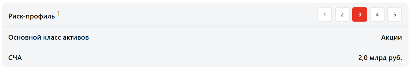 1 Указываемый индикативный риск-профиль продукта представлен исключительно в информационно-справочных целях, отражает индикативный уровень потенциального риска при инвестициях в продукты УК «Альфа-Капитал». Не является указанием уровня допустимого риска клиента, определяемого в соответствии с требованиями Положения Банка России 482-П «О единых требованиях к правилам осуществления деятельности по управлению ценными бумагами, к порядку раскрытия управляющим информации, а также требованиях, направленных на исключение конфликта интересов управляющего» и Базового стандарта совершения управляющим операций на финансовом рынке.