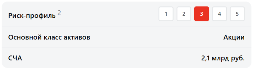 1 Указываемый индикативный риск-профиль продукта представлен исключительно в информационно-справочных целях, отражает индикативный уровень потенциального риска при инвестициях в продукты УК «Альфа-Капитал». Не является указанием уровня допустимого риска клиента, определяемого в соответствии с требованиями Положения Банка России 482-П «О единых требованиях к правилам осуществления деятельности по управлению ценными бумагами, к порядку раскрытия управляющим информации, а также требованиях, направленных на исключение конфликта интересов управляющего» и Базового стандарта совершения управляющим операций на финансовом рынке.