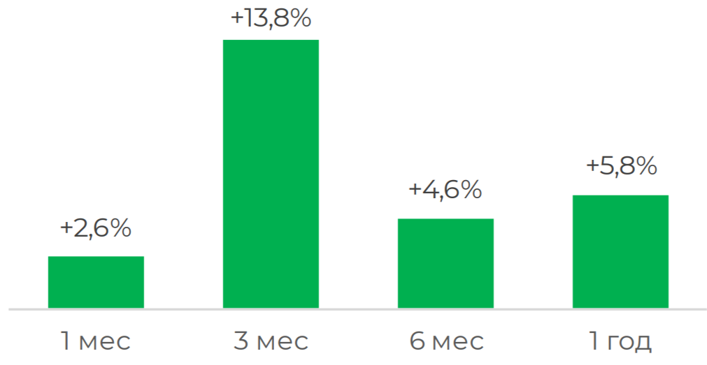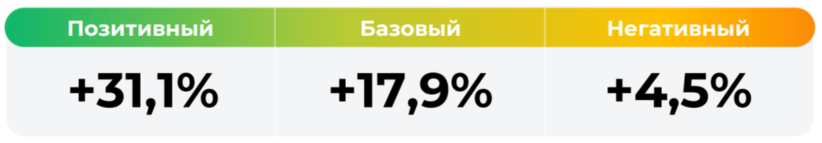 *Сценарные прогнозы (далее - Сценарии) рассчитаны на основании портфеля активов, составляющих имущество фонда в соответствии с Методикой расчета сценарных прогнозов открытых и биржевых паевых инвестиционных фондов под управлением ООО УК "Альфа Капитал", размещенной на сайте управляющей компании по адресу https://www.alfacapital.ru/disclosure/clients_info. Сценарии отражают аналитическую оценку потенциальной динамики совокупного портфеля активов за вычетом лимитированных в соответствии с правилами доверительного управления фондом размеров расходов и вознаграждений, подлежащих оплате за счет имущества фонда, и не являются гарантией или обещанием достижения соответствующих результатов в будущем. Инвестирование в финансовые инструменты сопряжено с рисками, в том числе с риском частичной потери инвестированных средств в связи с возможным неблагоприятным влиянием разного рода факторов. Фактические результаты инвестирования могут отличаться от представленных в расчетах Сценариев. Расчеты Сценариев ООО УК «Альфа-Капитал» осуществляются с использованием данных Сервиса прогнозов АО Петербургская Биржа.