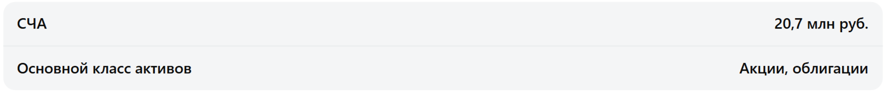 СТОИМОСТЬ ИНВЕСТИЦИОННЫХ ПАЕВ МОЖЕТ УВЕЛИЧИВАТЬСЯ И УМЕНЬШАТЬСЯ, РЕЗУЛЬТАТЫ ИНВЕСТИРОВАНИЯ В ПРОШЛОМ НЕ ОПРЕДЕЛЯЮТ ДОХОДОВ В БУДУЩЕМ, ГОСУДАРСТВО НЕ ГАРАНТИРУЕТ ДОХОДНОСТЬ ИНВЕСТИЦИЙ В ИНВЕСТИЦИОННЫЕ ФОНДЫ. ПРЕЖДЕ ЧЕМ ПРИОБРЕСТИ ИНВЕСТИЦИОННЫЙ ПАЙ, СЛЕДУЕТ ВНИМАТЕЛЬНО ОЗНАКОМИТЬСЯ С ПРАВИЛАМИ ДОВЕРИТЕЛЬНОГО УПРАВЛЕНИЯ ПАЕВЫМ ИНВЕСТИЦИОННЫМ ФОНДОМ.