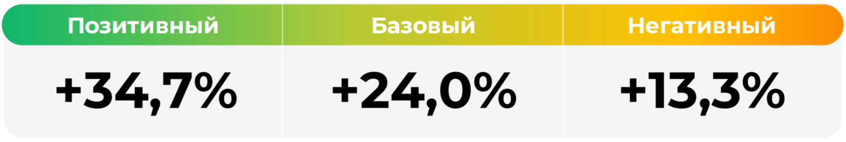 Сценарии отражают аналитическую оценку потенциальной динамики совокупного портфеля активов за вычетом лимитированных в соответствии с правилами доверительного управления фондом размеров расходов и вознаграждений, подлежащих оплате за счет имущества фонда, и не являются гарантией или обещанием достижения соответствующих результатов в будущем. Инвестирование в финансовые инструменты сопряжено с рисками, в том числе с риском частичной потери инвестированных средств в связи с возможным неблагоприятным влиянием разного рода факторов. Фактические результаты инвестирования могут отличаться от представленных в расчетах Сценариев. Расчеты Сценариев ООО УК «Альфа-Капитал» осуществляются с использованием данных Сервиса прогнозов АО Петербургская Биржа.