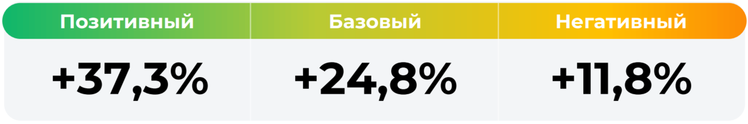 *Сценарные прогнозы (далее - Сценарии) рассчитаны на основании портфеля активов, составляющих имущество фонда в соответствии с Методикой расчета сценарных прогнозов открытых и биржевых паевых инвестиционных фондов под управлением ООО УК "Альфа Капитал", размещенной на сайте управляющей компании по адресу https://www.alfacapital.ru/disclosure/clients_info. Сценарии отражают аналитическую оценку потенциальной динамики совокупного портфеля активов за вычетом лимитированных в соответствии с правилами доверительного управления фондом размеров расходов и вознаграждений, подлежащих оплате за счет имущества фонда, и не являются гарантией или обещанием достижения соответствующих результатов в будущем. Инвестирование в финансовые инструменты сопряжено с рисками, в том числе с риском частичной потери инвестированных средств в связи с возможным неблагоприятным влиянием разного рода факторов. Фактические результаты инвестирования могут отличаться от представленных в расчетах Сценариев. Расчеты Сценариев ООО УК «Альфа-Капитал» осуществляются с использованием данных Сервиса прогнозов АО Петербургская Биржа.