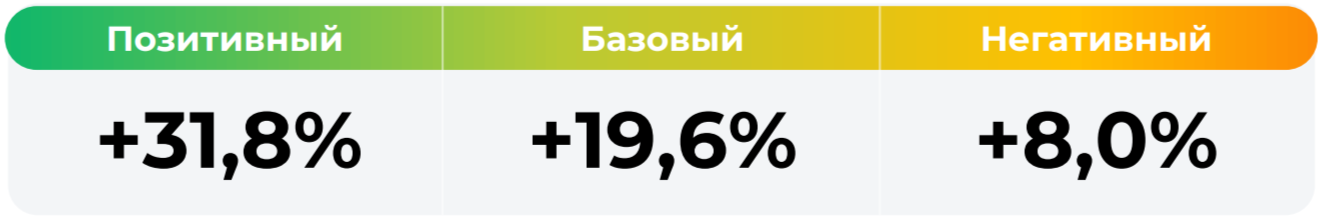 *Сценарные прогнозы (далее - Сценарии) рассчитаны на основании портфеля активов, составляющих имущество фонда в соответствии с Методикой расчета сценарных прогнозов открытых и биржевых паевых инвестиционных фондов под управлением ООО УК "Альфа Капитал", размещенной на сайте управляющей компании по адресу https://www.alfacapital.ru/disclosure/clients_info. Сценарии отражают аналитическую оценку потенциальной динамики совокупного портфеля активов за вычетом лимитированных в соответствии с правилами доверительного управления фондом размеров расходов и вознаграждений, подлежащих оплате за счет имущества фонда, и не являются гарантией или обещанием достижения соответствующих результатов в будущем. Инвестирование в финансовые инструменты сопряжено с рисками, в том числе с риском частичной потери инвестированных средств в связи с возможным неблагоприятным влиянием разного рода факторов. Фактические результаты инвестирования могут отличаться от представленных в расчетах Сценариев. Расчеты Сценариев ООО УК «Альфа-Капитал» осуществляются с использованием данных Сервиса прогнозов АО Петербургская Биржа.