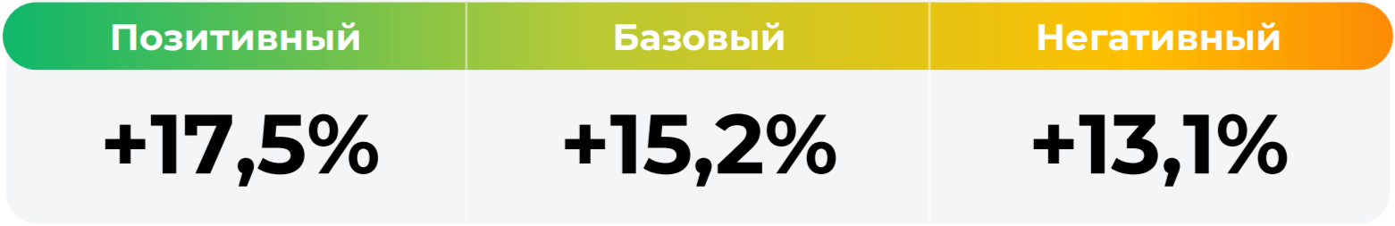 *Сценарные прогнозы (далее - Сценарии) рассчитаны на основании портфеля активов, составляющих имущество фонда в соответствии с Методикой расчета сценарных прогнозов открытых и биржевых паевых инвестиционных фондов под управлением УК "Альфа-Капитал", размещенной на сайте управляющей компании по адресу https://www.alfacapital.ru/disclosure/clients_info. Сценарии отражают аналитическую оценку потенциальной динамики совокупного портфеля активов за вычетом лимитированных в соответствии с правилами доверительного управления фондом размеров расходов и вознаграждений, подлежащих оплате за счет имущества фонда, и не являются гарантией или обещанием достижения соответствующих результатов в будущем. Инвестирование в финансовые инструменты сопряжено с рисками, в том числе с риском частичной потери инвестированных средств в связи с возможным неблагоприятным влиянием разного рода факторов. Фактические результаты инвестирования могут отличаться от представленных в расчетах Сценариев. Расчеты Сценариев ООО УК «Альфа-Капитал» осуществляются с использованием данных Сервиса прогнозов АО Петербургская Биржа.