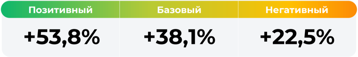 *Сценарные прогнозы (далее - Сценарии) рассчитаны на основании портфеля активов, составляющих имущество фонда в соответствии с Методикой расчета сценарных прогнозов открытых и биржевых паевых инвестиционных фондов под управлением УК "Альфа-Капитал", размещенной на сайте управляющей компании по адресу https://www.alfacapital.ru/disclosure/clients_info. Сценарии отражают аналитическую оценку потенциальной динамики совокупного портфеля активов за вычетом лимитированных в соответствии с правилами доверительного управления фондом размеров расходов и вознаграждений, подлежащих оплате за счет имущества фонда, и не являются гарантией или обещанием достижения соответствующих результатов в будущем. Инвестирование в финансовые инструменты сопряжено с рисками, в том числе с риском частичной потери инвестированных средств в связи с возможным неблагоприятным влиянием разного рода факторов. Фактические результаты инвестирования могут отличаться от представленных в расчетах Сценариев. Расчеты Сценариев ООО УК «Альфа-Капитал» осуществляются с использованием данных Сервиса прогнозов АО Петербургская Биржа.