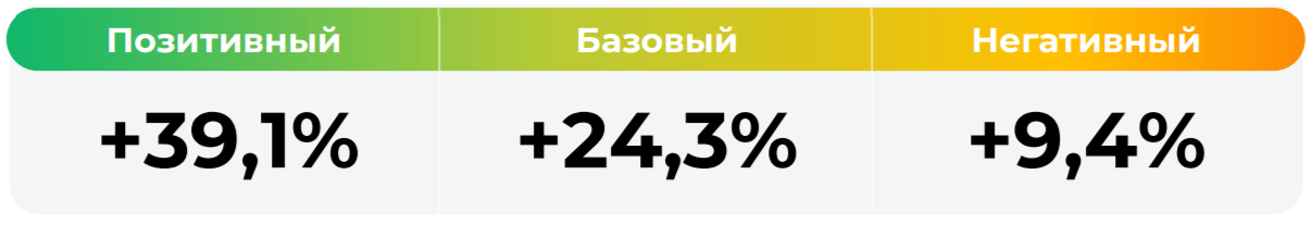 *Сценарные прогнозы (далее - Сценарии) рассчитаны на основании портфеля активов, составляющих имущество фонда в соответствии с Методикой расчета сценарных прогнозов открытых и биржевых паевых инвестиционных фондов под управлением УК "Альфа-Капитал", размещенной на сайте управляющей компании по адресу https://www.alfacapital.ru/disclosure/clients_info. Сценарии отражают аналитическую оценку потенциальной динамики совокупного портфеля активов за вычетом лимитированных в соответствии с правилами доверительного управления фондом размеров расходов и вознаграждений, подлежащих оплате за счет имущества фонда, и не являются гарантией или обещанием достижения соответствующих результатов в будущем. Инвестирование в финансовые инструменты сопряжено с рисками, в том числе с риском частичной потери инвестированных средств в связи с возможным неблагоприятным влиянием разного рода факторов. Фактические результаты инвестирования могут отличаться от представленных в расчетах Сценариев. Расчеты Сценариев ООО УК «Альфа-Капитал» осуществляются с использованием данных Сервиса прогнозов АО Петербургская Биржа.