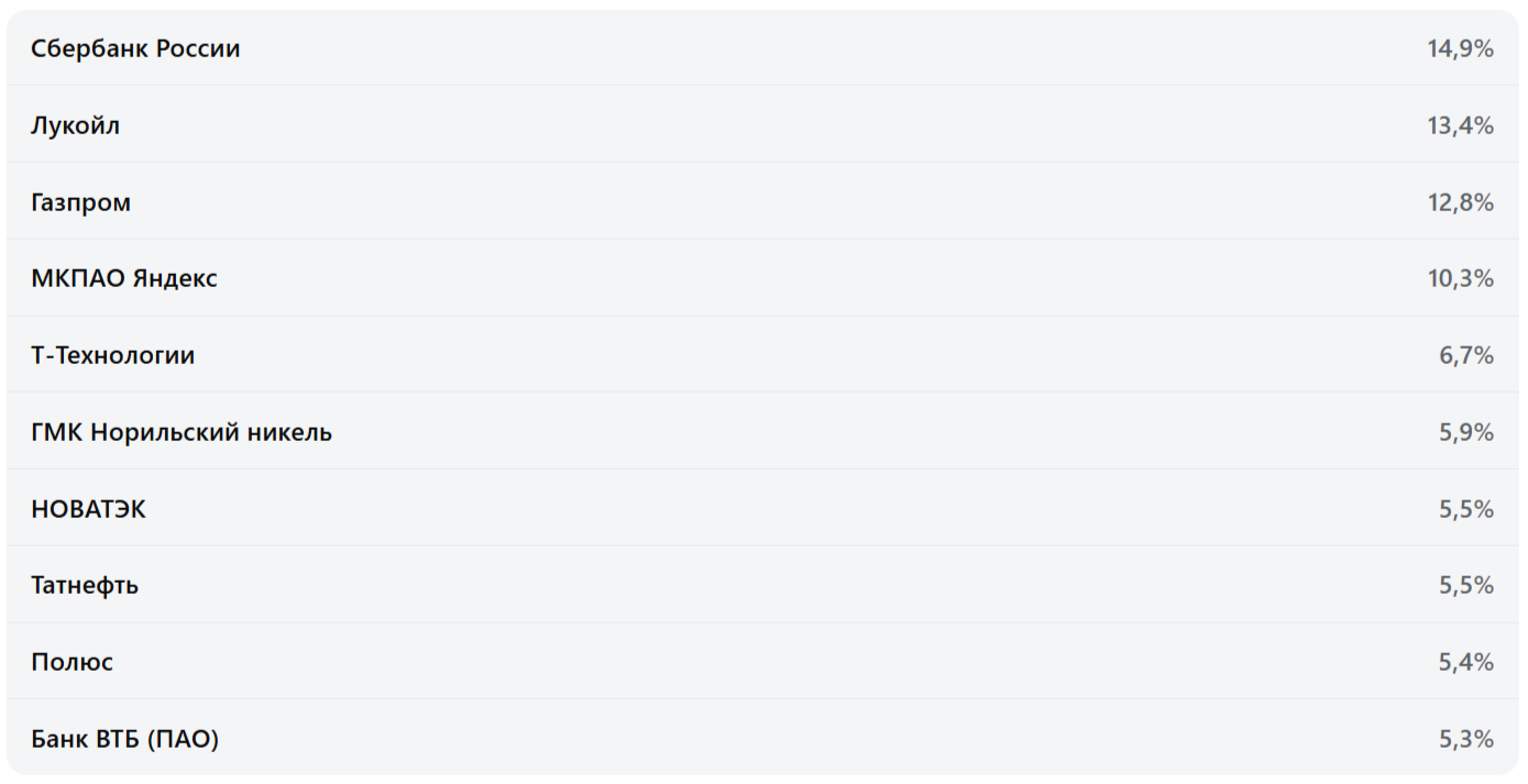 Индекс МосБиржи голубых фишек полной доходности «брутто» (MEBCTR) — финансовый индикатор, рассчитываемый ПАО «Московская Биржа». Название «Индекс МосБиржи голубых фишек» зарегистрировано в качестве товарного знака, правообладателем которого является ПАО «Московская Биржа». ПАО «Московская Биржа» не дает никаких гарантий и заверений третьим лицам в целесообразности инвестирования в финансовые продукты Общества с ограниченной ответственностью «Управляющая компания «Альфа-Капитал», основанные на индексах, рассчитываемых ПАО «Московская Биржа». Указанный индикатор, который напрямую ассоциируется с товарным знаком «Индекс МосБиржи голубых фишек», создан и рассчитывается без привязки к хозяйственной деятельности Общества с ограниченной ответственностью «Управляющая компания «Альфа-Капитал». БПИФ рыночных финансовых инструментов «Альфа-Капитал Индекс голубых фишек МосБиржи». Правила доверительного управления № 6911 зарегистрированы Банком России 19.03.2025.