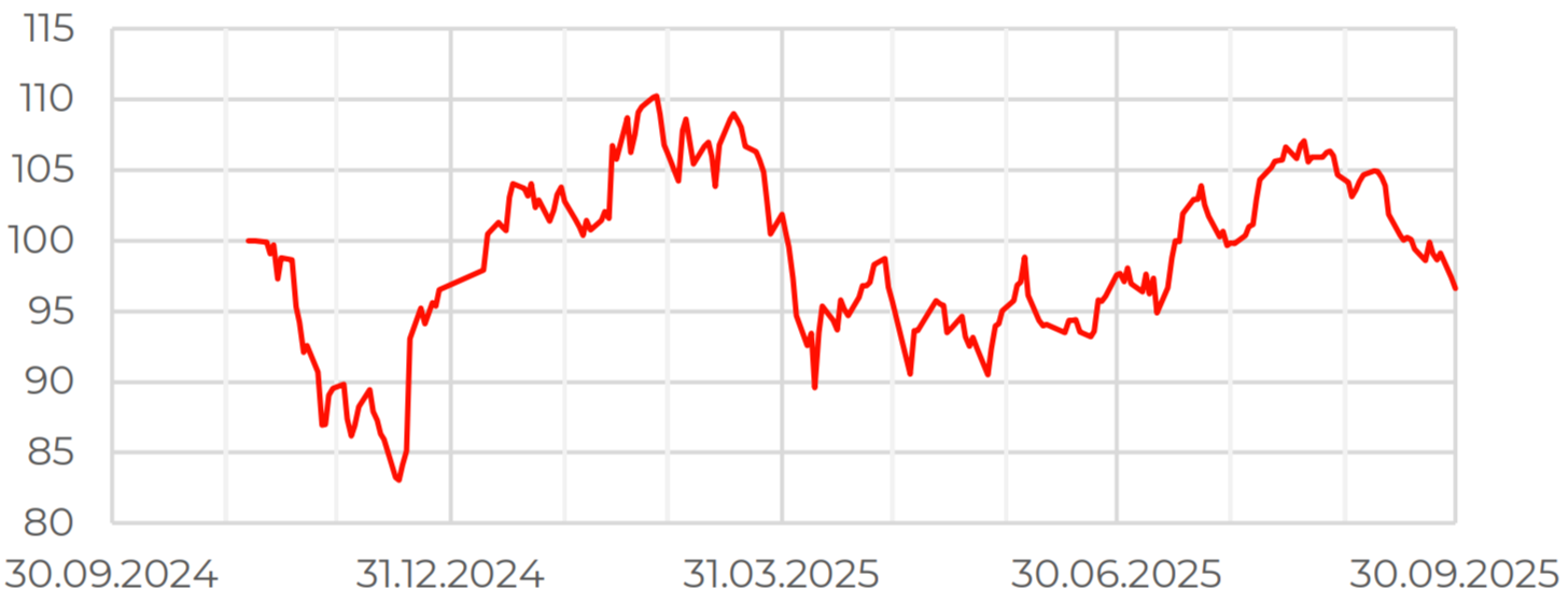Сентябрь стал непростым для компаний IT-сектора. Консервативное решение Банка России снизить ставку на 100 б. п. в сентябре не оправдало ожидания рынка о 200 б. п., при этом регулятор дал жесткий комментарий. На этом фоне инвесторы существенно пересмотрели ожидания в пользу более длительного удержания ключевой ставки на уровнях, близких к текущим.