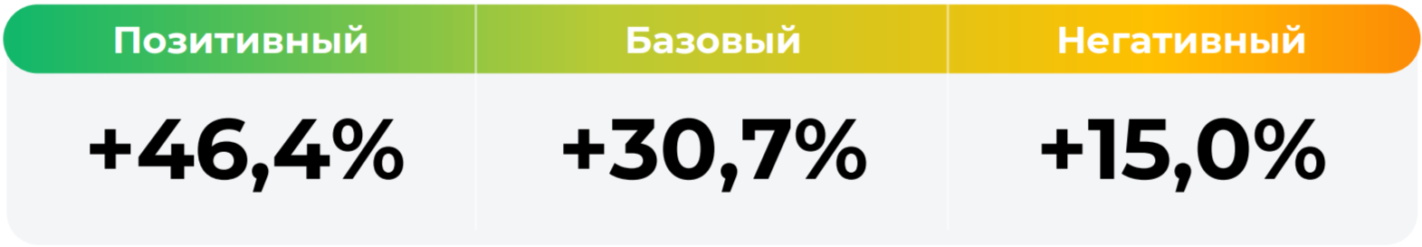 *Сценарные прогнозы (далее - Сценарии) рассчитаны на основании портфеля активов, составляющих имущество фонда в соответствии с Методикой расчета сценарных прогнозов открытых и биржевых паевых инвестиционных фондов под управлением УК "Альфа-Капитал", размещенной на сайте управляющей компании по адресу https://www.alfacapital.ru/disclosure/clients_info. Сценарии отражают аналитическую оценку потенциальной динамики совокупного портфеля активов за вычетом лимитированных в соответствии с правилами доверительного управления фондом размеров расходов и вознаграждений, подлежащих оплате за счет имущества фонда, и не являются гарантией или обещанием достижения соответствующих результатов в будущем. Инвестирование в финансовые инструменты сопряжено с рисками, в том числе с риском частичной потери инвестированных средств в связи с возможным неблагоприятным влиянием разного рода факторов. Фактические результаты инвестирования могут отличаться от представленных в расчетах Сценариев. Расчеты Сценариев ООО УК «Альфа-Капитал» осуществляются с использованием данных Сервиса прогнозов АО Петербургская Биржа.