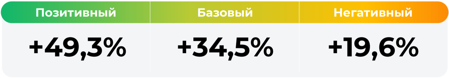 *Сценарные прогнозы (далее - Сценарии) рассчитаны на основании портфеля активов, составляющих имущество фонда в соответствии с Методикой расчета сценарных прогнозов открытых и биржевых паевых инвестиционных фондов под управлением УК "Альфа-Капитал", размещенной на сайте управляющей компании по адресу https://www.alfacapital.ru/disclosure/clients_info. Сценарии отражают аналитическую оценку потенциальной динамики совокупного портфеля активов за вычетом лимитированных в соответствии с правилами доверительного управления фондом размеров расходов и вознаграждений, подлежащих оплате за счет имущества фонда, и не являются гарантией или обещанием достижения соответствующих результатов в будущем. Инвестирование в финансовые инструменты сопряжено с рисками, в том числе с риском частичной потери инвестированных средств в связи с возможным неблагоприятным влиянием разного рода факторов. Фактические результаты инвестирования могут отличаться от представленных в расчетах Сценариев. Расчеты Сценариев ООО УК «Альфа-Капитал» осуществляются с использованием данных Сервиса прогнозов АО Петербургская Биржа.