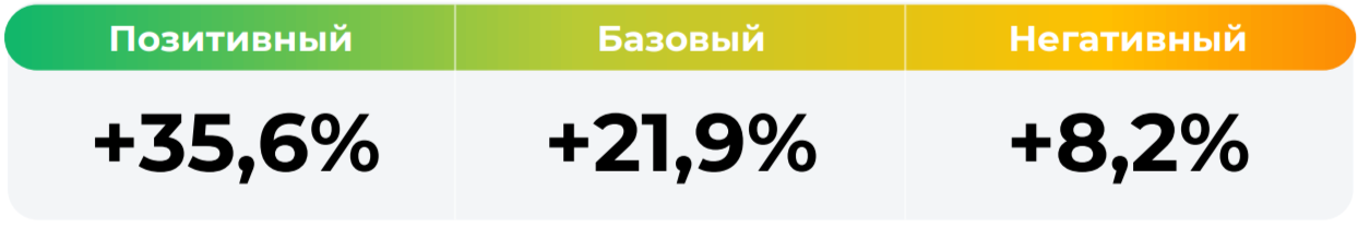 *Сценарные прогнозы (далее - Сценарии) рассчитаны на основании портфеля активов, составляющих имущество фонда в соответствии с Методикой расчета сценарных прогнозов открытых и биржевых паевых инвестиционных фондов под управлением УК "Альфа-Капитал", размещенной на сайте управляющей компании по адресу https://www.alfacapital.ru/disclosure/clients_info. Сценарии отражают аналитическую оценку потенциальной динамики совокупного портфеля активов за вычетом лимитированных в соответствии с правилами доверительного управления фондом размеров расходов и вознаграждений, подлежащих оплате за счет имущества фонда, и не являются гарантией или обещанием достижения соответствующих результатов в будущем. Инвестирование в финансовые инструменты сопряжено с рисками, в том числе с риском частичной потери инвестированных средств в связи с возможным неблагоприятным влиянием разного рода факторов. Фактические результаты инвестирования могут отличаться от представленных в расчетах Сценариев. Расчеты Сценариев ООО УК «Альфа-Капитал» осуществляются с использованием данных Сервиса прогнозов АО Петербургская Биржа.