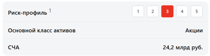 1 Указываемый индикативный риск-профиль продукта представлен исключительно в информационно-справочных целях, отражает индикативный уровень потенциального риска при инвестициях в продукты УК «Альфа-Капитал». Не является указанием уровня допустимого риска клиента, определяемого в соответствии с требованиями Положения Банка России 482-П «О единых требованиях к правилам осуществления деятельности по управлению ценными бумагами, к порядку раскрытия управляющим информации, а также требованиях, направленных на исключение конфликта интересов управляющего» и Базового стандарта совершения управляющим операций на финансовом рынке.