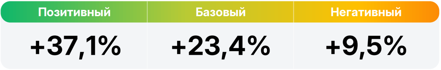 *Сценарные прогнозы (далее - Сценарии) рассчитаны на основании портфеля активов, составляющих имущество фонда в соответствии с Методикой расчета сценарных прогнозов открытых и биржевых паевых инвестиционных фондов под управлением ООО УК "Альфа Капитал", размещенной на сайте управляющей компании по адресу https://www.alfacapital.ru/disclosure/clients_info. Сценарии отражают аналитическую оценку потенциальной динамики совокупного портфеля активов за вычетом лимитированных в соответствии с правилами доверительного управления фондом размеров расходов и вознаграждений, подлежащих оплате за счет имущества фонда, и не являются гарантией или обещанием достижения соответствующих результатов в будущем. Инвестирование в финансовые инструменты сопряжено с рисками, в том числе с риском частичной потери инвестированных средств в связи с возможным неблагоприятным влиянием разного рода факторов. Фактические результаты инвестирования могут отличаться от представленных в расчетах Сценариев. Расчеты Сценариев ООО УК «Альфа-Капитал» осуществляются с использованием данных Сервиса прогнозов АО Петербургская Биржа.