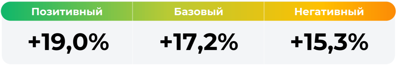 *Сценарные прогнозы (далее - Сценарии) рассчитаны на основании портфеля активов, составляющих имущество фонда в соответствии с Методикой расчета сценарных прогнозов открытых и биржевых паевых инвестиционных фондов под управлением ООО УК "Альфа Капитал", размещенной на сайте управляющей компании по адресу https://www.alfacapital.ru/disclosure/clients_info. Сценарии отражают аналитическую оценку потенциальной динамики совокупного портфеля активов за вычетом лимитированных в соответствии с правилами доверительного управления фондом размеров расходов и вознаграждений, подлежащих оплате за счет имущества фонда, и не являются гарантией или обещанием достижения соответствующих результатов в будущем. Инвестирование в финансовые инструменты сопряжено с рисками, в том числе с риском частичной потери инвестированных средств в связи с возможным неблагоприятным влиянием разного рода факторов. Фактические результаты инвестирования могут отличаться от представленных в расчетах Сценариев. Расчеты Сценариев ООО УК «Альфа-Капитал» осуществляются с использованием данных Сервиса прогнозов АО Петербургская Биржа.