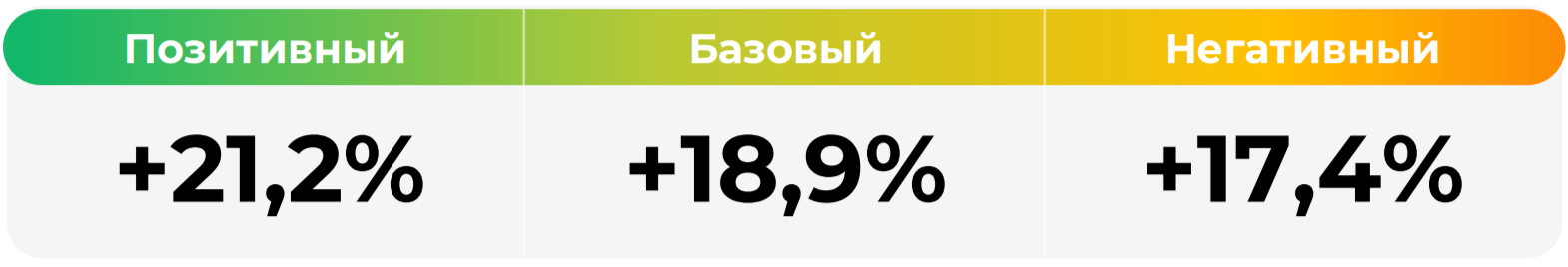 *Сценарные прогнозы (далее - Сценарии) рассчитаны на основании портфеля активов, составляющих имущество фонда в соответствии с Методикой расчета сценарных прогнозов открытых и биржевых паевых инвестиционных фондов под управлением ООО УК "Альфа Капитал", размещенной на сайте управляющей компании по адресу https://www.alfacapital.ru/disclosure/clients_info. Сценарии отражают аналитическую оценку потенциальной динамики совокупного портфеля активов за вычетом лимитированных в соответствии с правилами доверительного управления фондом размеров расходов и вознаграждений, подлежащих оплате за счет имущества фонда, и не являются гарантией или обещанием достижения соответствующих результатов в будущем. Инвестирование в финансовые инструменты сопряжено с рисками, в том числе с риском частичной потери инвестированных средств в связи с возможным неблагоприятным влиянием разного рода факторов. Фактические результаты инвестирования могут отличаться от представленных в расчетах Сценариев. Расчеты Сценариев ООО УК «Альфа-Капитал» осуществляются с использованием данных Сервиса прогнозов АО Петербургская Биржа.