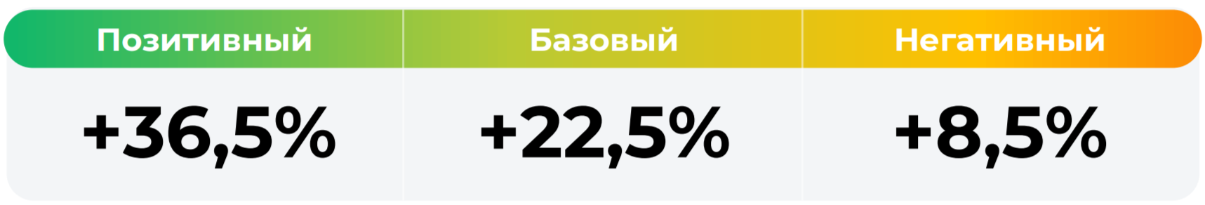 *Сценарные прогнозы (далее - Сценарии) рассчитаны на основании портфеля активов, составляющих имущество фонда в соответствии с Методикой расчета сценарных прогнозов открытых и биржевых паевых инвестиционных фондов под управлением ООО УК "Альфа Капитал", размещенной на сайте управляющей компании по адресу https://www.alfacapital.ru/disclosure/clients_info. Сценарии отражают аналитическую оценку потенциальной динамики совокупного портфеля активов за вычетом лимитированных в соответствии с правилами доверительного управления фондом размеров расходов и вознаграждений, подлежащих оплате за счет имущества фонда, и не являются гарантией или обещанием достижения соответствующих результатов в будущем. Инвестирование в финансовые инструменты сопряжено с рисками, в том числе с риском частичной потери инвестированных средств в связи с возможным неблагоприятным влиянием разного рода факторов. Фактические результаты инвестирования могут отличаться от представленных в расчетах Сценариев. Расчеты Сценариев ООО УК «Альфа-Капитал» осуществляются с использованием данных Сервиса прогнозов АО Петербургская Биржа.