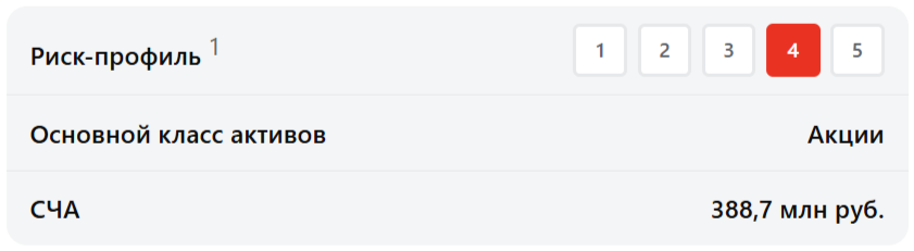 1 Указываемый индикативный риск-профиль продукта представлен исключительно в информационно-справочных целях, отражает индикативный уровень потенциального риска при инвестициях в продукты УК «Альфа-Капитал». Не является указанием уровня допустимого риска клиента, определяемого в соответствии с требованиями Положения Банка России 482-П «О единых требованиях к правилам осуществления деятельности по управлению ценными бумагами, к порядку раскрытия управляющим информации, а также требованиях, направленных на исключение конфликта интересов управляющего» и Базового стандарта совершения управляющим операций на финансовом рынке.