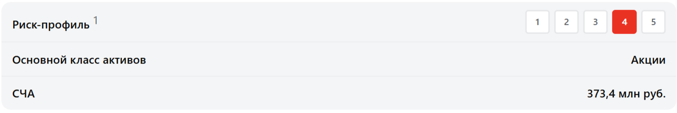 1 Указываемый индикативный риск-профиль продукта представлен исключительно в информационно-справочных целях, отражает индикативный уровень потенциального риска при инвестициях в продукты УК «Альфа-Капитал». Не является указанием уровня допустимого риска клиента, определяемого в соответствии с требованиями Положения Банка России 482-П «О единых требованиях к правилам осуществления деятельности по управлению ценными бумагами, к порядку раскрытия управляющим информации, а также требованиях, направленных на исключение конфликта интересов управляющего» и Базового стандарта совершения управляющим операций на финансовом рынке.