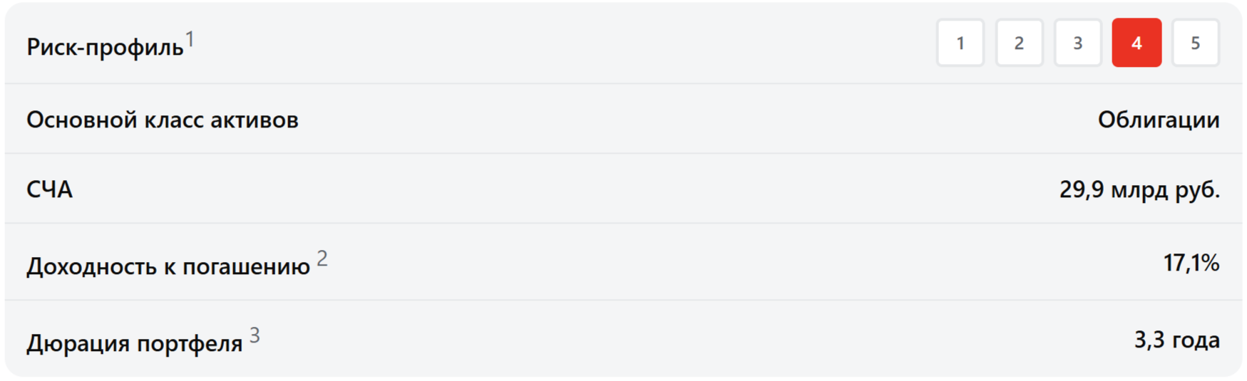 3 Средневзвешенная дюрация к оферте/погашению, рассчитанная по всем бумагам, входящим в портфель ПИФа.