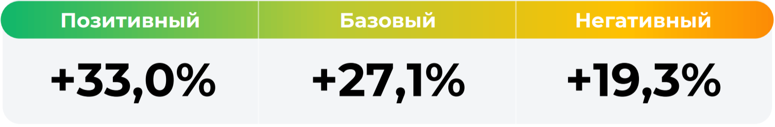 *Сценарные прогнозы (далее - Сценарии) рассчитаны на основании портфеля активов, составляющих имущество фонда в соответствии с Методикой расчета сценарных прогнозов открытых и биржевых паевых инвестиционных фондов под управлением ООО УК "Альфа Капитал", размещенной на сайте управляющей компании по адресу https://www.alfacapital.ru/disclosure/clients_info. Сценарии отражают аналитическую оценку потенциальной динамики совокупного портфеля активов за вычетом лимитированных в соответствии с правилами доверительного управления фондом размеров расходов и вознаграждений, подлежащих оплате за счет имущества фонда, и не являются гарантией или обещанием достижения соответствующих результатов в будущем. Инвестирование в финансовые инструменты сопряжено с рисками, в том числе с риском частичной потери инвестированных средств в связи с возможным неблагоприятным влиянием разного рода факторов. Фактические результаты инвестирования могут отличаться от представленных в расчетах Сценариев. Расчеты Сценариев ООО УК «Альфа-Капитал» осуществляются с использованием данных Сервиса прогнозов АО Петербургская Биржа.