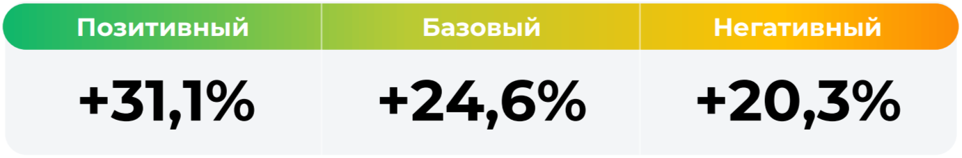 *Сценарные прогнозы (далее - Сценарии) рассчитаны на основании портфеля активов, составляющих имущество фонда в соответствии с Методикой расчета сценарных прогнозов открытых и биржевых паевых инвестиционных фондов под управлением ООО УК "Альфа Капитал", размещенной на сайте управляющей компании по адресу https://www.alfacapital.ru/disclosure/clients_info. Сценарии отражают аналитическую оценку потенциальной динамики совокупного портфеля активов за вычетом лимитированных в соответствии с правилами доверительного управления фондом размеров расходов и вознаграждений, подлежащих оплате за счет имущества фонда, и не являются гарантией или обещанием достижения соответствующих результатов в будущем. Инвестирование в финансовые инструменты сопряжено с рисками, в том числе с риском частичной потери инвестированных средств в связи с возможным неблагоприятным влиянием разного рода факторов. Фактические результаты инвестирования могут отличаться от представленных в расчетах Сценариев. Расчеты Сценариев ООО УК «Альфа-Капитал» осуществляются с использованием данных Сервиса прогнозов АО Петербургская Биржа.