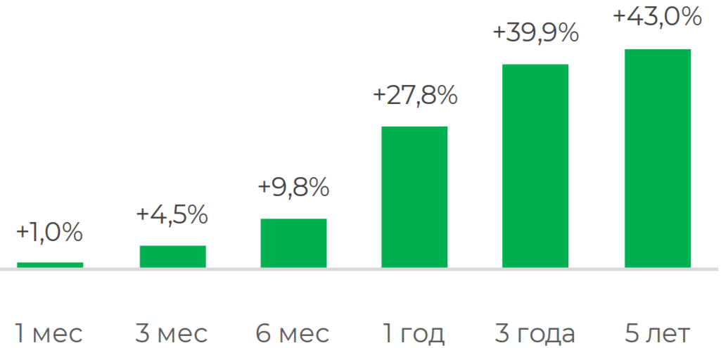 СТОИМОСТЬ ИНВЕСТИЦИОННЫХ ПАЕВ МОЖЕТ УВЕЛИЧИВАТЬСЯ И УМЕНЬШАТЬСЯ, РЕЗУЛЬТАТЫ ИНВЕСТИРОВАНИЯ В ПРОШЛОМ НЕ ОПРЕДЕЛЯЮТ ДОХОДОВ В БУДУЩЕМ, ГОСУДАРСТВО НЕ ГАРАНТИРУЕТ ДОХОДНОСТЬ ИНВЕСТИЦИЙ В ИНВЕСТИЦИОННЫЕ ФОНДЫ. ПРЕЖДЕ ЧЕМ ПРИОБРЕСТИ ИНВЕСТИЦИОННЫЙ ПАЙ, СЛЕДУЕТ ВНИМАТЕЛЬНО ОЗНАКОМИТЬСЯ С ПРАВИЛАМИ ДОВЕРИТЕЛЬНОГО УПРАВЛЕНИЯ ПАЕВЫМ ИНВЕСТИЦИОННЫМ ФОНДОМ.