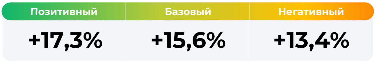 *Сценарные прогнозы (далее - Сценарии) рассчитаны на основании портфеля активов, составляющих имущество фонда в соответствии с Методикой расчета сценарных прогнозов открытых и биржевых паевых инвестиционных фондов под управлением УК "Альфа-Капитал", размещенной на сайте управляющей компании по адресу https://www.alfacapital.ru/disclosure/clients_info. Сценарии отражают аналитическую оценку потенциальной динамики совокупного портфеля активов за вычетом лимитированных в соответствии с правилами доверительного управления фондом размеров расходов и вознаграждений, подлежащих оплате за счет имущества фонда, и не являются гарантией или обещанием достижения соответствующих результатов в будущем. Инвестирование в финансовые инструменты сопряжено с рисками, в том числе с риском частичной потери инвестированных средств в связи с возможным неблагоприятным влиянием разного рода факторов. Фактические результаты инвестирования могут отличаться от представленных в расчетах Сценариев. Расчеты Сценариев ООО УК «Альфа-Капитал» осуществляются с использованием данных Сервиса прогнозов АО Петербургская Биржа.