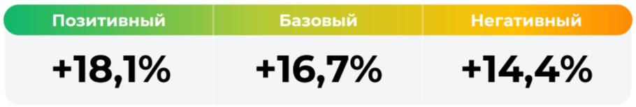 *Сценарные прогнозы (далее - Сценарии) рассчитаны на основании портфеля активов, составляющих имущество фонда в соответствии с Методикой расчета сценарных прогнозов открытых и биржевых паевых инвестиционных фондов под управлением УК "Альфа-Капитал", размещенной на сайте управляющей компании по адресу https://www.alfacapital.ru/disclosure/clients_info. Сценарии отражают аналитическую оценку потенциальной динамики совокупного портфеля активов за вычетом лимитированных в соответствии с правилами доверительного управления фондом размеров расходов и вознаграждений, подлежащих оплате за счет имущества фонда, и не являются гарантией или обещанием достижения соответствующих результатов в будущем. Инвестирование в финансовые инструменты сопряжено с рисками, в том числе с риском частичной потери инвестированных средств в связи с возможным неблагоприятным влиянием разного рода факторов. Фактические результаты инвестирования могут отличаться от представленных в расчетах Сценариев. Расчеты Сценариев ООО УК «Альфа-Капитал» осуществляются с использованием данных Сервиса прогнозов АО Петербургская Биржа.