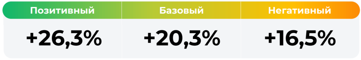 *Сценарные прогнозы (далее - Сценарии) рассчитаны на основании портфеля активов, составляющих имущество фонда в соответствии с Методикой расчета сценарных прогнозов открытых и биржевых паевых инвестиционных фондов под управлением ООО УК "Альфа Капитал", размещенной на сайте управляющей компании по адресу https://www.alfacapital.ru/disclosure/clients_info. Сценарии отражают аналитическую оценку потенциальной динамики совокупного портфеля активов за вычетом лимитированных в соответствии с правилами доверительного управления фондом размеров расходов и вознаграждений, подлежащих оплате за счет имущества фонда, и не являются гарантией или обещанием достижения соответствующих результатов в будущем. Инвестирование в финансовые инструменты сопряжено с рисками, в том числе с риском частичной потери инвестированных средств в связи с возможным неблагоприятным влиянием разного рода факторов. Фактические результаты инвестирования могут отличаться от представленных в расчетах Сценариев. Расчеты Сценариев ООО УК «Альфа-Капитал» осуществляются с использованием данных Сервиса прогнозов АО Петербургская Биржа.