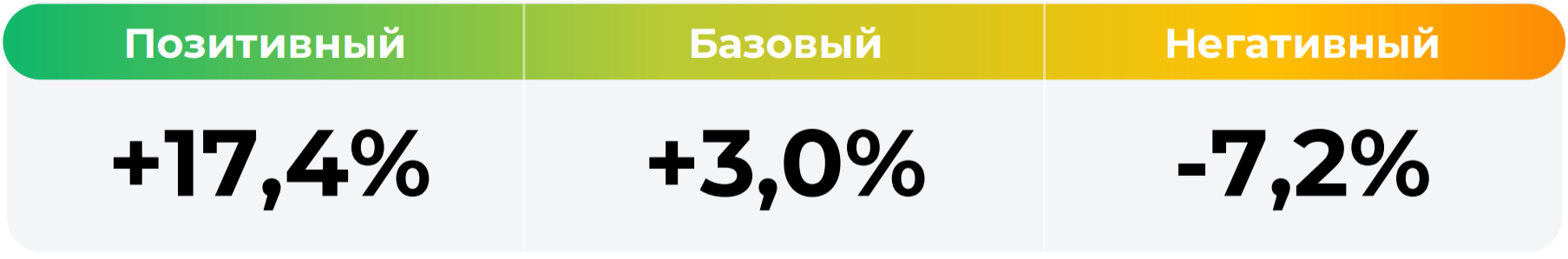 *Сценарные прогнозы (далее - Сценарии) рассчитаны на основании портфеля активов, составляющих имущество фонда в соответствии с Методикой расчета сценарных прогнозов открытых и биржевых паевых инвестиционных фондов под управлением УК "Альфа-Капитал", размещенной на сайте управляющей компании по адресу https://www.alfacapital.ru/disclosure/clients_info. Сценарии отражают аналитическую оценку потенциальной динамики совокупного портфеля активов за вычетом лимитированных в соответствии с правилами доверительного управления фондом размеров расходов и вознаграждений, подлежащих оплате за счет имущества фонда, и не являются гарантией или обещанием достижения соответствующих результатов в будущем. Инвестирование в финансовые инструменты сопряжено с рисками, в том числе с риском частичной потери инвестированных средств в связи с возможным неблагоприятным влиянием разного рода факторов. Фактические результаты инвестирования могут отличаться от представленных в расчетах Сценариев. Расчеты Сценариев ООО УК «Альфа-Капитал» осуществляются с использованием данных Сервиса прогнозов АО Петербургская Биржа.