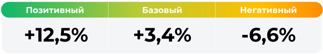 *Сценарные прогнозы (далее - Сценарии) рассчитаны на основании портфеля активов, составляющих имущество фонда в соответствии с Методикой расчета сценарных прогнозов открытых и биржевых паевых инвестиционных фондов под управлением УК "Альфа-Капитал", размещенной на сайте управляющей компании по адресу https://www.alfacapital.ru/disclosure/clients_info. Сценарии отражают аналитическую оценку потенциальной динамики совокупного портфеля активов за вычетом лимитированных в соответствии с правилами доверительного управления фондом размеров расходов и вознаграждений, подлежащих оплате за счет имущества фонда, и не являются гарантией или обещанием достижения соответствующих результатов в будущем. Инвестирование в финансовые инструменты сопряжено с рисками, в том числе с риском частичной потери инвестированных средств в связи с возможным неблагоприятным влиянием разного рода факторов. Фактические результаты инвестирования могут отличаться от представленных в расчетах Сценариев. Расчеты Сценариев ООО УК «Альфа-Капитал» осуществляются с использованием данных Сервиса прогнозов АО Петербургская Биржа.