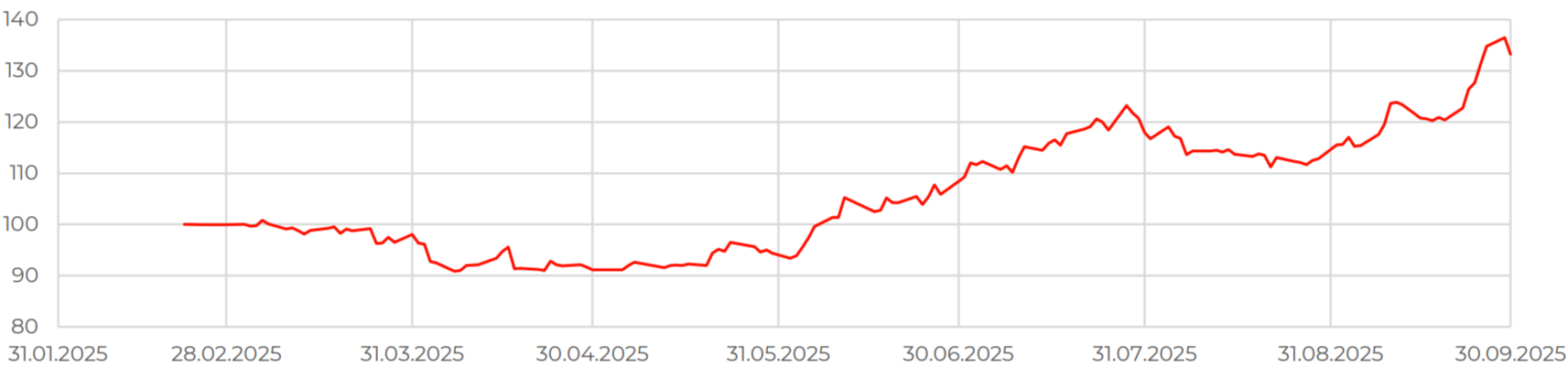 БПИФ рыночных финансовых инструментов «Альфа-Капитал Платина — Палладий». Правила доверительного управления № 6838 зарегистрированы Банком России 03.02.2025. Общество с ограниченной ответственностью «Управляющая компания «Альфа-Капитал». Лицензия ФСФР № 21-000-1-00028 от 22.09.1998. Лицензия ФСФР № 077-08158-001000 от 30.11.2004. Правилами доверительного управления паевыми инвестиционными фондами, находящимися под управлением ООО УК «Альфа-Капитал», предусмотрены надбавки к расчетной стоимости инвестиционных паев при их выдаче и скидки к расчетной стоимости паев при их погашении. Обращаем ваше внимание на то, что взимание скидок и надбавок уменьшает доходность инвестиций в инвестиционные паи паевых инвестиционных фондов. Информацию о деятельности ООО УК «Альфа-Капитал» и фондах под ее управлением можно получить на сайте www.alfacapital.ru и по адресу: Москва, ул. Садовая-Кудринская, д. 32, стр. 1, тел. +7 (495) 783-4-783. Не является индивидуальной инвестиционной рекомендацией.