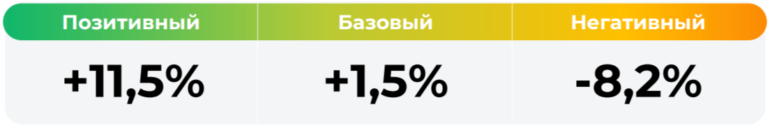 *Сценарные прогнозы (далее - Сценарии) рассчитаны на основании портфеля активов, составляющих имущество фонда в соответствии с Методикой расчета сценарных прогнозов открытых и биржевых паевых инвестиционных фондов под управлением УК "Альфа-Капитал", размещенной на сайте управляющей компании по адресу https://www.alfacapital.ru/disclosure/clients_info. Сценарии отражают аналитическую оценку потенциальной динамики совокупного портфеля активов за вычетом лимитированных в соответствии с правилами доверительного управления фондом размеров расходов и вознаграждений, подлежащих оплате за счет имущества фонда, и не являются гарантией или обещанием достижения соответствующих результатов в будущем. Инвестирование в финансовые инструменты сопряжено с рисками, в том числе с риском частичной потери инвестированных средств в связи с возможным неблагоприятным влиянием разного рода факторов. Фактические результаты инвестирования могут отличаться от представленных в расчетах Сценариев. Расчеты Сценариев ООО УК «Альфа-Капитал» осуществляются с использованием данных Сервиса прогнозов АО Петербургская Биржа.