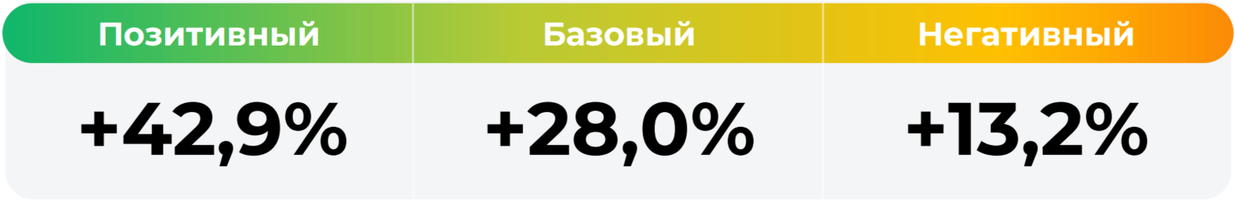 *Сценарные прогнозы (далее - Сценарии) рассчитаны на основании портфеля активов, составляющих имущество фонда в соответствии с Методикой расчета сценарных прогнозов открытых и биржевых паевых инвестиционных фондов под управлением ООО УК "Альфа Капитал", размещенной на сайте управляющей компании по адресу https://www.alfacapital.ru/disclosure/clients_info. Сценарии отражают аналитическую оценку потенциальной динамики совокупного портфеля активов за вычетом лимитированных в соответствии с правилами доверительного управления фондом размеров расходов и вознаграждений, подлежащих оплате за счет имущества фонда, и не являются гарантией или обещанием достижения соответствующих результатов в будущем. Инвестирование в финансовые инструменты сопряжено с рисками, в том числе с риском частичной потери инвестированных средств в связи с возможным неблагоприятным влиянием разного рода факторов. Фактические результаты инвестирования могут отличаться от представленных в расчетах Сценариев. Расчеты Сценариев ООО УК «Альфа-Капитал» осуществляются с использованием данных Сервиса прогнозов АО Петербургская Биржа.