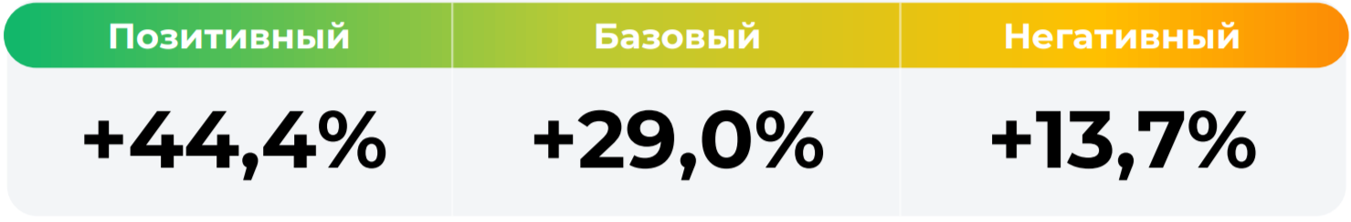 *Сценарные прогнозы (далее - Сценарии) рассчитаны на основании портфеля активов, составляющих имущество фонда в соответствии с Методикой расчета сценарных прогнозов открытых и биржевых паевых инвестиционных фондов под управлением ООО УК "Альфа Капитал", размещенной на сайте управляющей компании по адресу https://www.alfacapital.ru/disclosure/clients_info. Сценарии отражают аналитическую оценку потенциальной динамики совокупного портфеля активов за вычетом лимитированных в соответствии с правилами доверительного управления фондом размеров расходов и вознаграждений, подлежащих оплате за счет имущества фонда, и не являются гарантией или обещанием достижения соответствующих результатов в будущем. Инвестирование в финансовые инструменты сопряжено с рисками, в том числе с риском частичной потери инвестированных средств в связи с возможным неблагоприятным влиянием разного рода факторов. Фактические результаты инвестирования могут отличаться от представленных в расчетах Сценариев. Расчеты Сценариев ООО УК «Альфа-Капитал» осуществляются с использованием данных Сервиса прогнозов АО Петербургская Биржа.