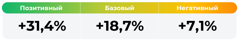 *Сценарные прогнозы (далее - Сценарии) рассчитаны на основании портфеля активов, составляющих имущество фонда в соответствии с Методикой расчета сценарных прогнозов открытых и биржевых паевых инвестиционных фондов под управлением ООО УК "Альфа Капитал", размещенной на сайте управляющей компании по адресу https://www.alfacapital.ru/disclosure/clients_info. Сценарии отражают аналитическую оценку потенциальной динамики совокупного портфеля активов за вычетом лимитированных в соответствии с правилами доверительного управления фондом размеров расходов и вознаграждений, подлежащих оплате за счет имущества фонда, и не являются гарантией или обещанием достижения соответствующих результатов в будущем. Инвестирование в финансовые инструменты сопряжено с рисками, в том числе с риском частичной потери инвестированных средств в связи с возможным неблагоприятным влиянием разного рода факторов. Фактические результаты инвестирования могут отличаться от представленных в расчетах Сценариев. Расчеты Сценариев ООО УК «Альфа-Капитал» осуществляются с использованием данных Сервиса прогнозов АО Петербургская Биржа.