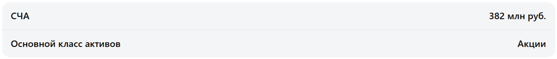 СТОИМОСТЬ ИНВЕСТИЦИОННЫХ ПАЕВ МОЖЕТ УВЕЛИЧИВАТЬСЯ И УМЕНЬШАТЬСЯ, РЕЗУЛЬТАТЫ ИНВЕСТИРОВАНИЯ В ПРОШЛОМ НЕ ОПРЕДЕЛЯЮТ ДОХОДОВ В БУДУЩЕМ, ГОСУДАРСТВО НЕ ГАРАНТИРУЕТ ДОХОДНОСТЬ ИНВЕСТИЦИЙ В ИНВЕСТИЦИОННЫЕ ФОНДЫ. ПРЕЖДЕ ЧЕМ ПРИОБРЕСТИ ИНВЕСТИЦИОННЫЙ ПАЙ, СЛЕДУЕТ ВНИМАТЕЛЬНО ОЗНАКОМИТЬСЯ С ПРАВИЛАМИ ДОВЕРИТЕЛЬНОГО УПРАВЛЕНИЯ ПАЕВЫМ ИНВЕСТИЦИОННЫМ ФОНДОМ.