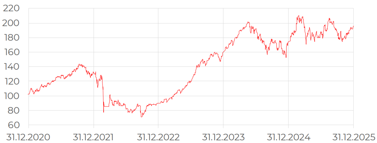 Поступающие данные о замедлении инфляции позволили некоторым участникам рассчитывать на снижение ставки на 100 б. п., поэтому итоговое решение о понижении на 50 б. п. не стало поводом для роста рынка акций. Кроме того, ЦБ РФ сохранил неизменным прогноз по средней ключевой ставке в пределах 13–15% на 2026 год.
