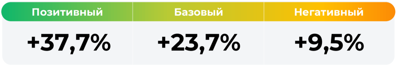 *Сценарные прогнозы (далее - Сценарии) рассчитаны на основании портфеля активов, составляющих имущество фонда в соответствии с Методикой расчета сценарных прогнозов открытых и биржевых паевых инвестиционных фондов под управлением УК "Альфа-Капитал", размещенной на сайте управляющей компании по адресу https://www.alfacapital.ru/disclosure/clients_info. Сценарии отражают аналитическую оценку потенциальной динамики совокупного портфеля активов за вычетом лимитированных в соответствии с правилами доверительного управления фондом размеров расходов и вознаграждений, подлежащих оплате за счет имущества фонда, и не являются гарантией или обещанием достижения соответствующих результатов в будущем. Инвестирование в финансовые инструменты сопряжено с рисками, в том числе с риском частичной потери инвестированных средств в связи с возможным неблагоприятным влиянием разного рода факторов. Фактические результаты инвестирования могут отличаться от представленных в расчетах Сценариев. Расчеты Сценариев ООО УК «Альфа-Капитал» осуществляются с использованием данных Сервиса прогнозов АО Петербургская Биржа.