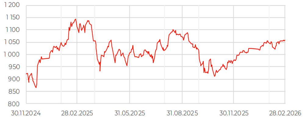 В феврале 2026 года российский рынок акций двигался в режиме умеренной волатильности, оставаясь в диапазоне 2 700–2 800 пунктов по индексу МосБиржи. Попытки закрепиться выше этого диапазона оставались кратковременными.