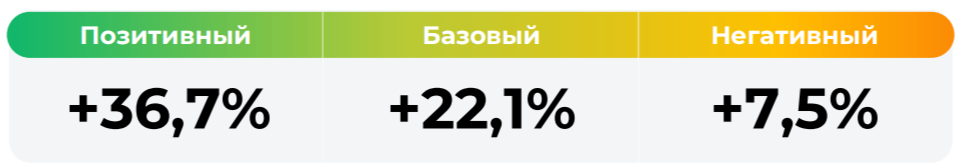 Сценарии отражают аналитическую оценку потенциальной динамики совокупного портфеля активов за вычетом лимитированных в соответствии с правилами доверительного управления фондом размеров расходов и вознаграждений, подлежащих оплате за счет имущества фонда, и не являются гарантией или обещанием достижения соответствующих результатов в будущем. Инвестирование в финансовые инструменты сопряжено с рисками, в том числе с риском частичной потери инвестированных средств в связи с возможным неблагоприятным влиянием разного рода факторов. Фактические результаты инвестирования могут отличаться от представленных в расчетах Сценариев. Расчеты Сценариев ООО УК «Альфа-Капитал» осуществляются с использованием данных Сервиса прогнозов АО Петербургская Биржа.