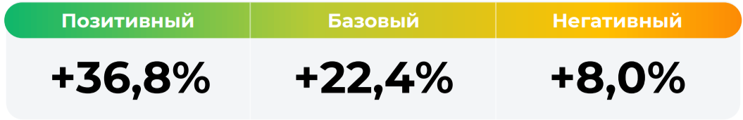 Сценарии отражают аналитическую оценку потенциальной динамики совокупного портфеля активов за вычетом лимитированных в соответствии с правилами доверительного управления фондом размеров расходов и вознаграждений, подлежащих оплате за счет имущества фонда, и не являются гарантией или обещанием достижения соответствующих результатов в будущем. Инвестирование в финансовые инструменты сопряжено с рисками, в том числе с риском частичной потери инвестированных средств в связи с возможным неблагоприятным влиянием разного рода факторов. Фактические результаты инвестирования могут отличаться от представленных в расчетах Сценариев. Расчеты Сценариев ООО УК «Альфа-Капитал» осуществляются с использованием данных Сервиса прогнозов АО Петербургская Биржа.