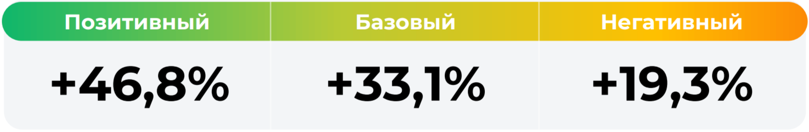 *Сценарные прогнозы (далее - Сценарии) рассчитаны на основании портфеля активов, составляющих имущество фонда в соответствии с Методикой расчета сценарных прогнозов открытых и биржевых паевых инвестиционных фондов под управлением УК "Альфа-Капитал", размещенной на сайте управляющей компании по адресу https://www.alfacapital.ru/disclosure/clients_info. Сценарии отражают аналитическую оценку потенциальной динамики совокупного портфеля активов за вычетом лимитированных в соответствии с правилами доверительного управления фондом размеров расходов и вознаграждений, подлежащих оплате за счет имущества фонда, и не являются гарантией или обещанием достижения соответствующих результатов в будущем. Инвестирование в финансовые инструменты сопряжено с рисками, в том числе с риском частичной потери инвестированных средств в связи с возможным неблагоприятным влиянием разного рода факторов. Фактические результаты инвестирования могут отличаться от представленных в расчетах Сценариев. Расчеты Сценариев ООО УК «Альфа-Капитал» осуществляются с использованием данных Сервиса прогнозов АО Петербургская Биржа.