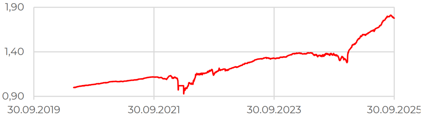 В октябре ЦБ РФ снизил ключевую ставку на 50 б. п., до 16,5%. Решение оказалось мягче консенсус-прогноза, который предполагал удержание 17%. Однако сохранение нейтрального сигнала и пересмотр среднесрочного макропрогноза в пользу более высокой траектории ключевой ставки охладили рыночные настроения.